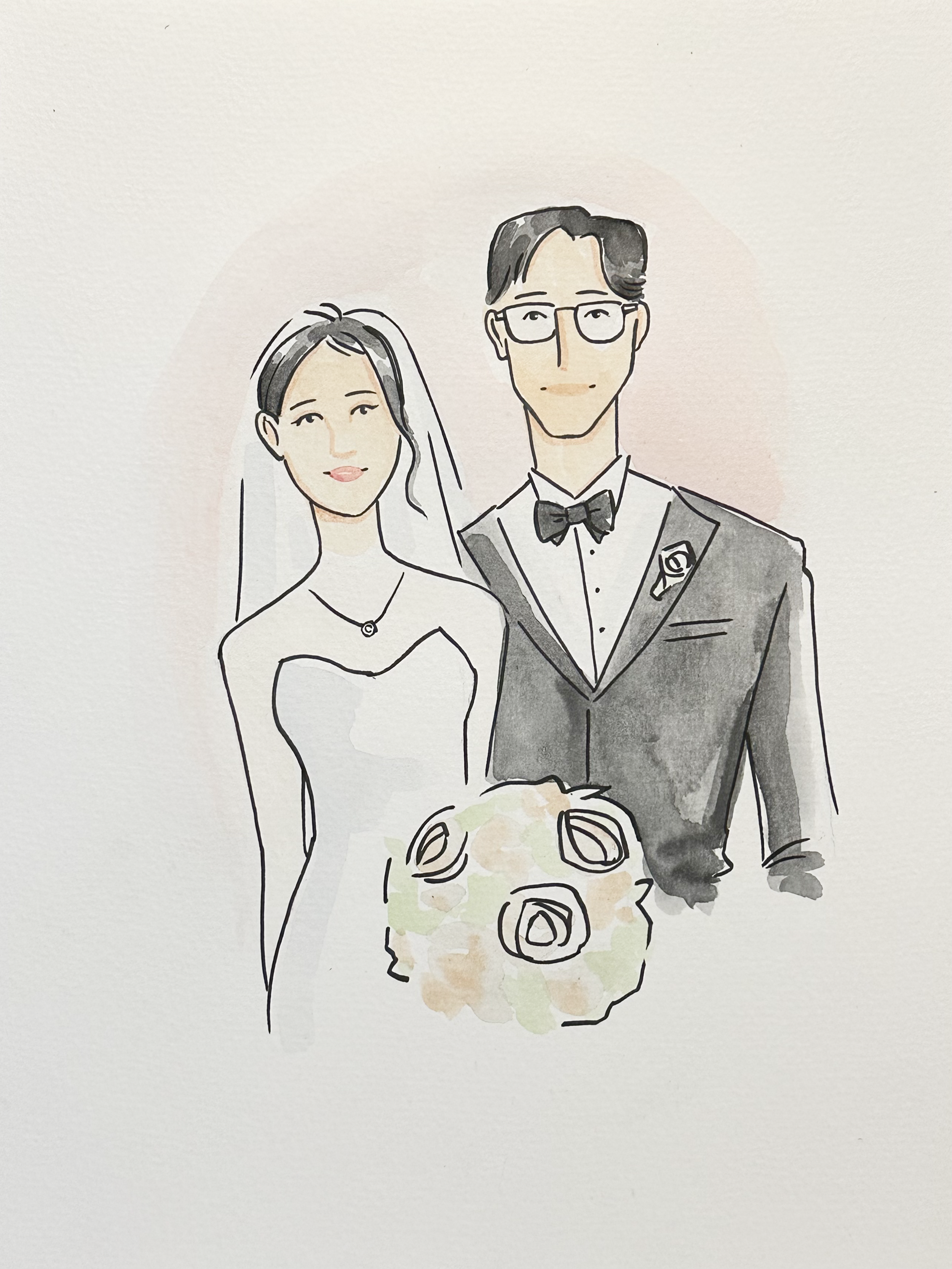 One 12” × 18” watercolor portrait of the couple
